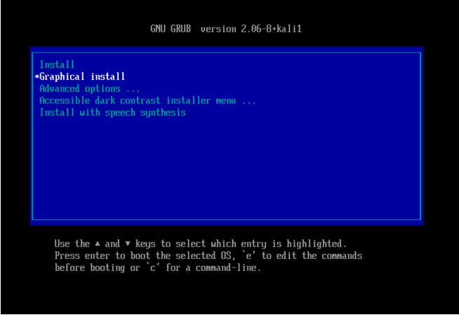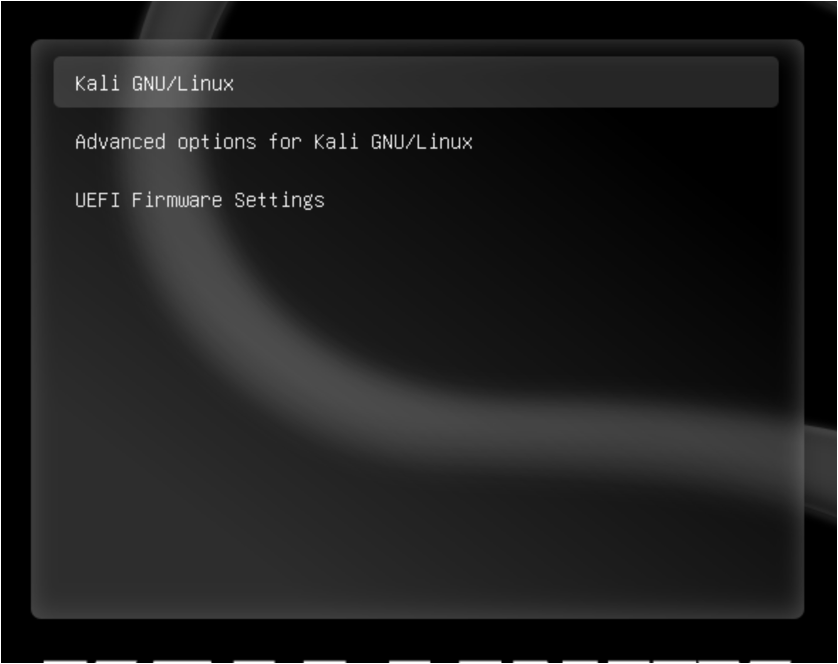 Une fois tout cela fait, une barre de chargement va commencer et terminer l’installation de Kali Linux. Laisser faire sans débrancher le réseau. Une fois terminer suivez les étapes elles sont simples donc je ne les aient pas mis dans cette procédure. Le pc va donc redémarrer et vous afficher dans un premier temps le grub. Définition en dessous de l’image.