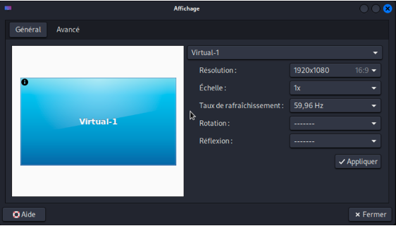 On règle donc les paramètres comme on le souhaite pour ma part je préfère l’affichage en 1920/1080 (16 :9). On peut ensuite cliquez sur « Appliquez ».