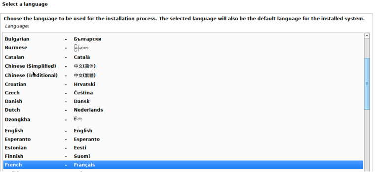 Ensuite on arrive sur cette page. On sélectionne la langue du programme d’installation qui sera donc français dans notre cas.