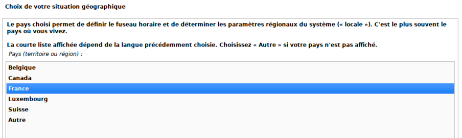 On va maintenant choisir ou on habite pour définir notamment le fuseau horaire.