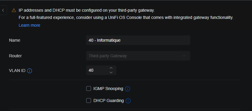 - Dans l’interface UniFi, allez dans Settings > Networks.
