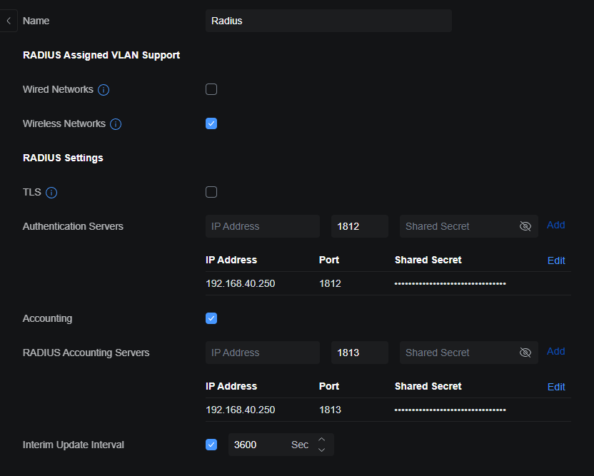 - Rendez-vous dans Settings > Profiles > RADIUS.